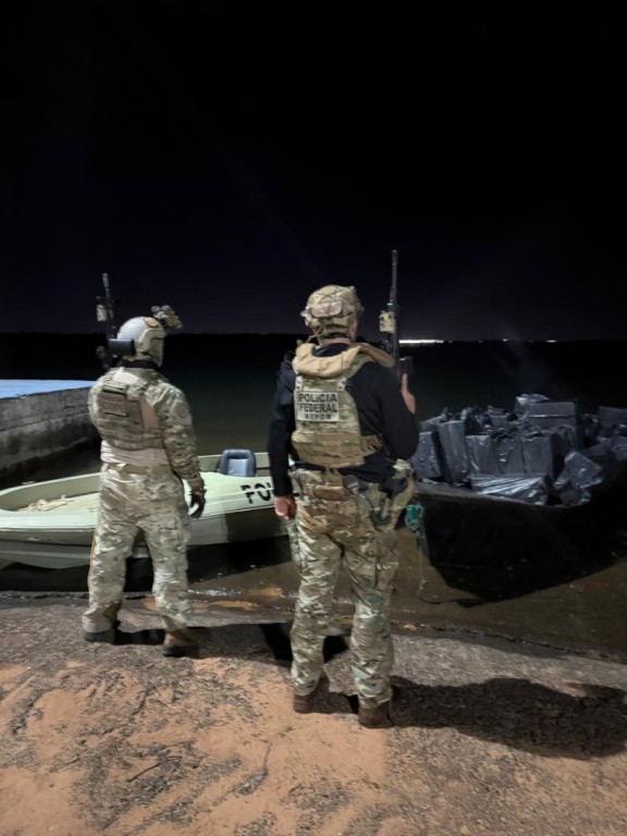 Foz do Iguaçu/PR. Uma ação conjunta entre a Polícia Federal, a Polícia Civil, Polícia Militar e a Receita Federal resultou na apreensão de uma embarcação carregada com aproximadamente 50 mil maços de cigarros de origem paraguaia.