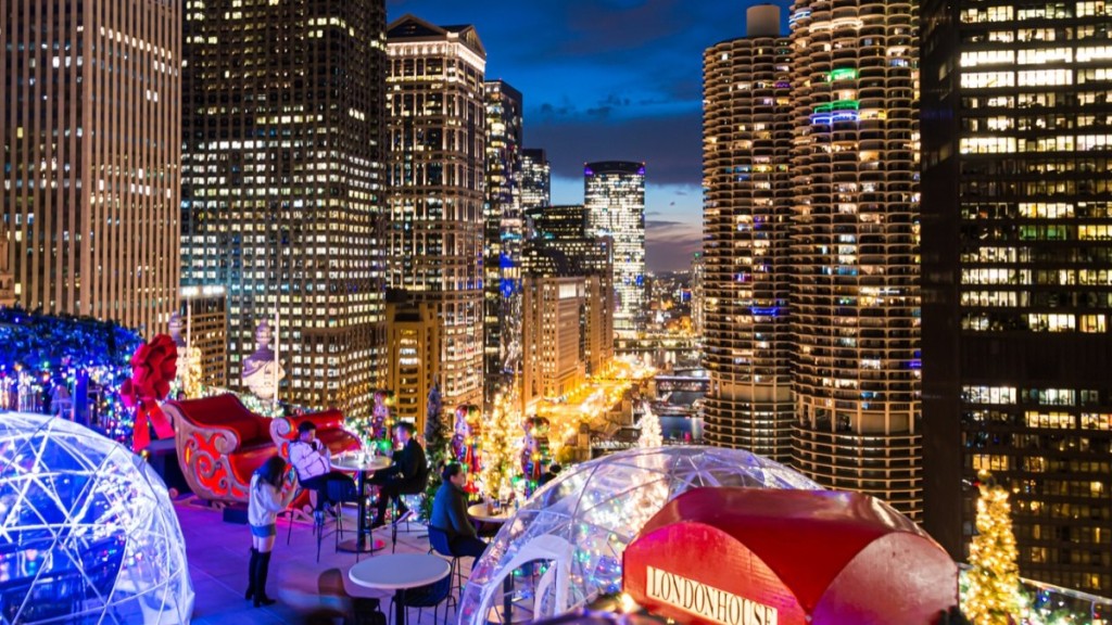 Localizado no 22º andar do LondonHouse Chicago , o pop-up sazonal Rudolph’s Rooftop tem bebidas quentes e frias, iglus aquecidos e aconchegantes, decoração natalina e cenários para tirar fotos. Sem mencionar as vistas deslumbrantes do Chicago River e da cidade ao redor, toda iluminada para as festas de fim de ano.