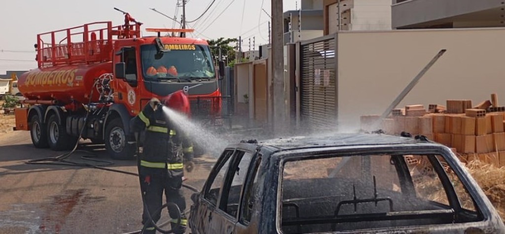 Bombeiros combatem incêndio em carro que pegou fogo em avenida em Primavera do Leste