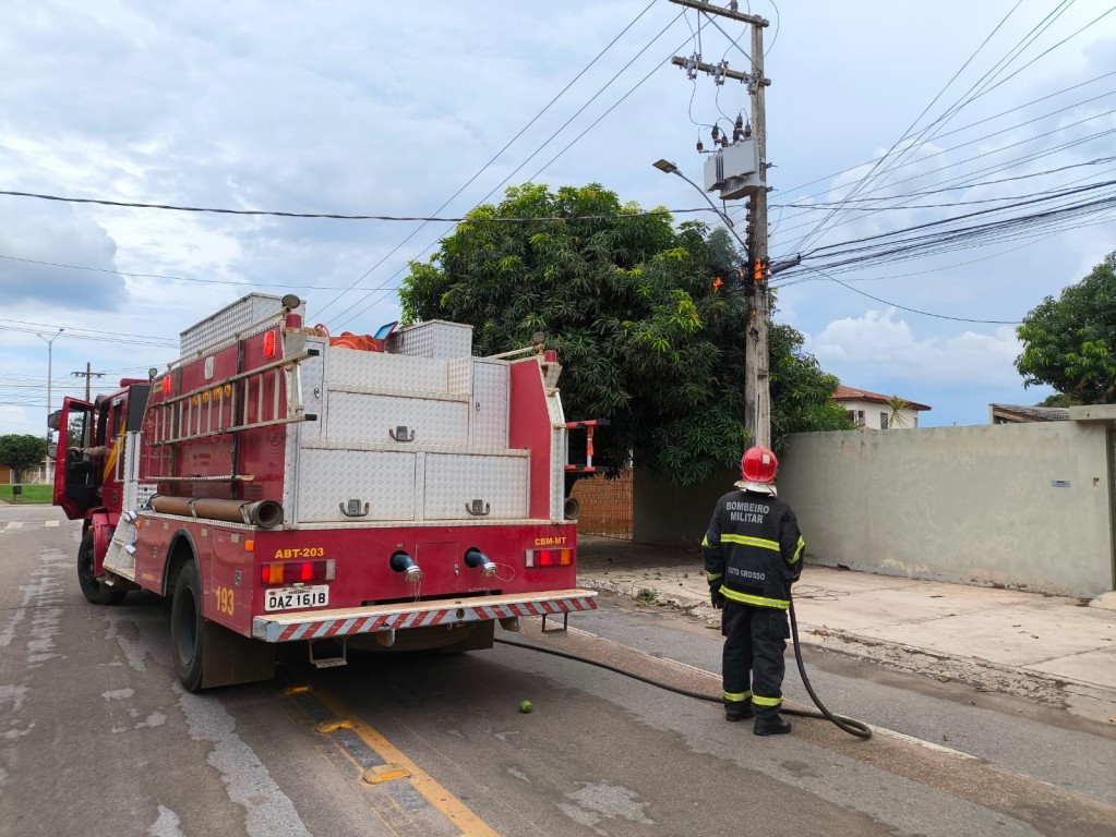 O Corpo de Bombeiros Militar de Mato Grosso (CBMMT) atuou, na tarde desta terça-feira (29.10), no combate a um incêndio em uma rede de baixa tensão e fibra ótica, em um poste de energia elétrica na Avenida São Paulo, na região central de Campo Verde (139 km de Cuiabá).
