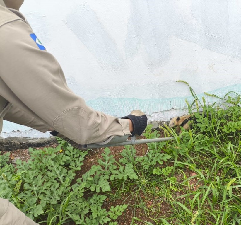 Após receber o chamado, a equipe da 11ª Companhia Independente Bombeiro Militar (11ª CIBM) deslocou-se rapidamente até o local da ocorrência. Para o resgate, a equipe utilizou o auxílio de um cambão, capturando o animal com cuidado e evitando acidentes.