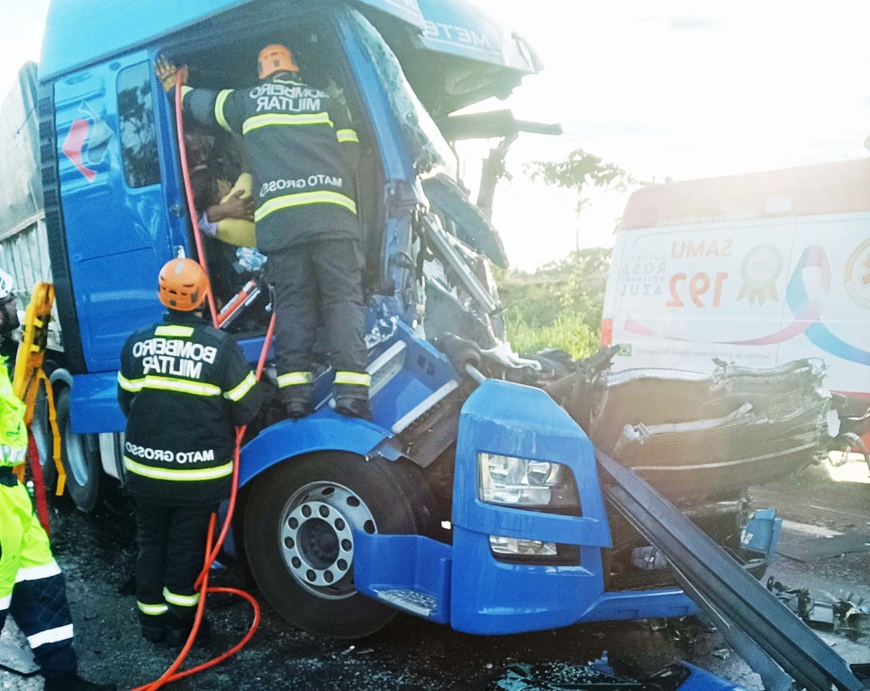 Bombeiros salvam idosa presa às ferragens de carreta após acidente na BR-364