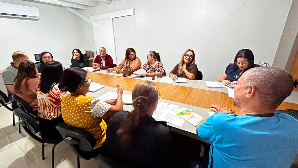 O encontro reuniu representantes das unidades escolares, equipe técnica e membros da comissão, com o objetivo de definir os temas das apresentações, a ordem das participações e o trajeto oficial do desfile.