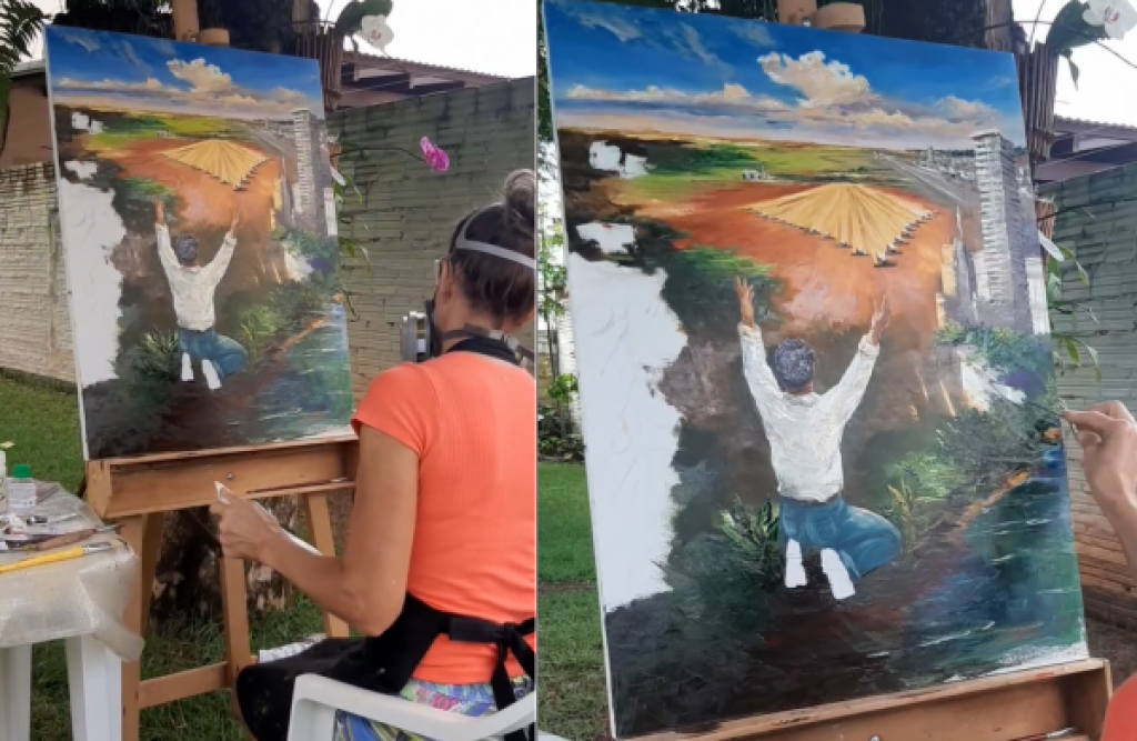 A renomada artista Vera Algayer reconstrói, em telas inéditas, momentos marcantes de Sorriso. Organizadas como uma verdadeira linha do tempo, as obras convidam o público a percorrer memórias que vão do período das primeiras famílias pioneiras às transformações que moldaram o município nas últimas décadas.