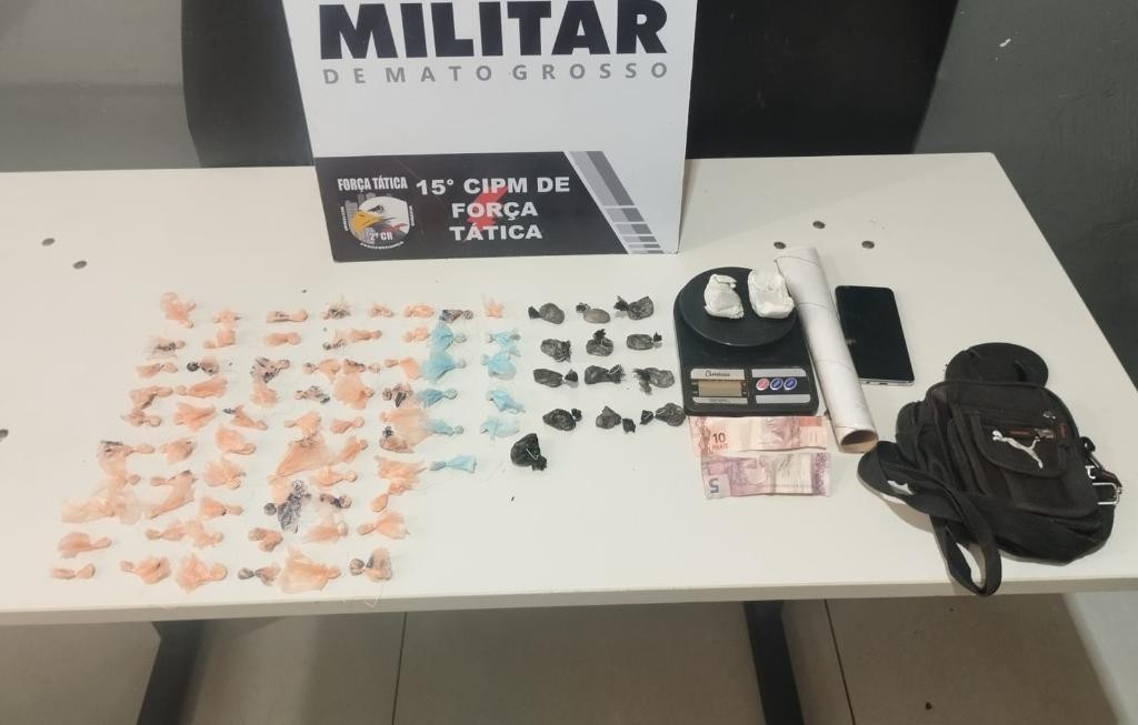 Força Tática apreende 104 porções de entorpecentes e prende dois homens por tráfico em Várzea Grande