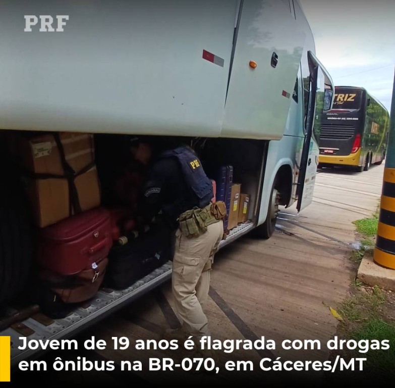 Jovem de 19 anos é flagrada com cocaína em ônibus na BR-070, em Cáceres (MT)