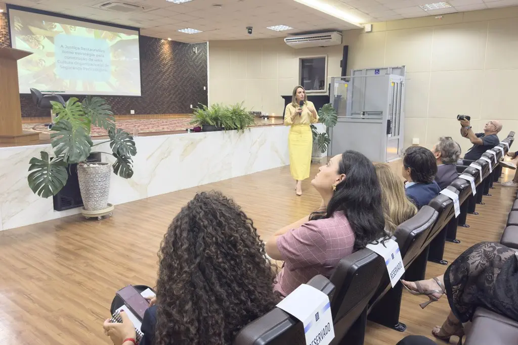 A palestra foi conduzida por Katiane Boschetti da Silveira, instrutora do Curso de Formação em Justiça Restaurativa, facilitadora em Círculos de Construção de Paz e estrategista em Inteligência Relacional. Com vasta experiência na área, ela destacou que a consolidação das práticas restaurativas no Poder Judiciário depende da sensibilidade e do engajamento pessoal dos servidores – agentes fundamentais na transformação das relações e na mediação de conflitos.