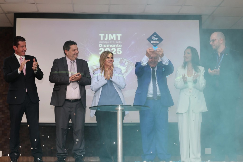 Em ato simbólico, magistrados e servidores celebraram o Selo Diamante conquistado no Prêmio CNJ de Qualidade 2025 conquistado pelo Tribunal de Justiça de Mato Grosso (TJMT). Concedido pelo Conselho Nacional de Justiça (CNJ), a premiação reconheceu a eficiente atuação do Judiciário de Mato Grosso, o colocando entre os tribunais nacionais que melhor atendem a população.