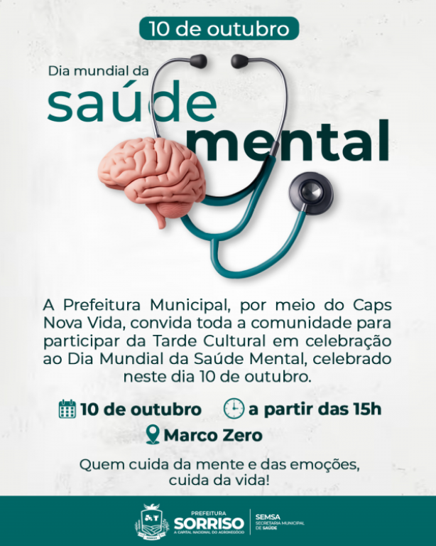 Município celebra o Dia Mundial da Saúde Mental com Tarde Cultural no Marco Zero