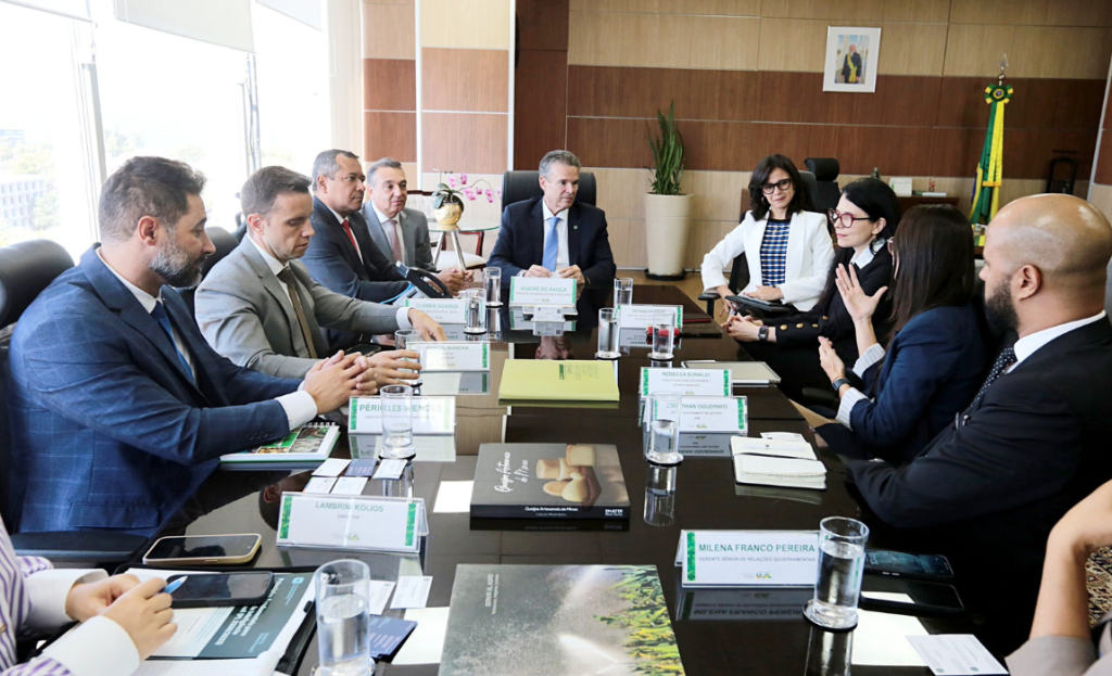O Ministério da Agricultura e Pecuária (Mapa) recebeu, nesta terça-feira (28), representantes da Câmara de Comércio dos Estados Unidos e do Conselho Empresarial Brasil-Estados Unidos para tratar de oportunidades comerciais entre os dois países. O encontro ocorreu na sede da Pasta, em Brasília (DF).
