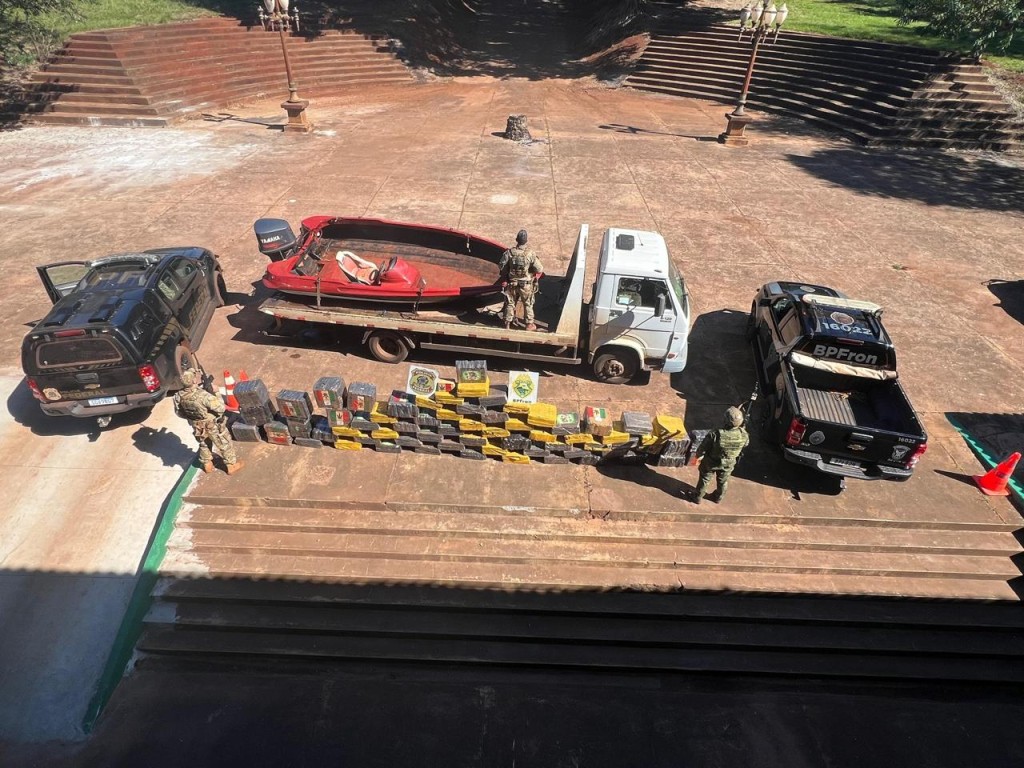 O material apreendido foi encaminhado, juntamente com a embarcação, à Delegacia da Polícia Federal em Foz do Iguaçu para os procedimentos legais.