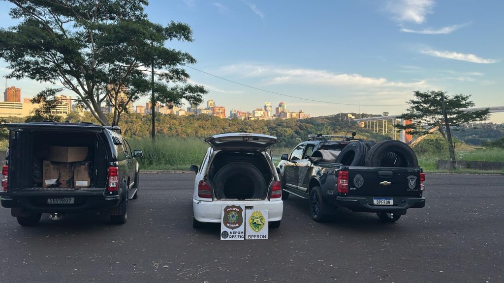 PF e PMPR apreendem veículo, cigarros e pneus contrabandeados em Foz do Iguaçu