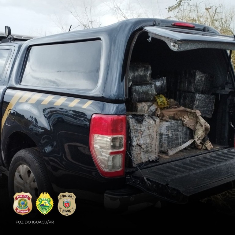 Foz do Iguaçu/PR. A Polícia Federal, em ação conjunta com a Polícia Civil e Polícia Militar do Paraná, apreendeu de 600 kg de maconha prensada nas margens do Rio Paraná, em Foz do Iguaçu. A ação ocorreu durante um patrulhamento.