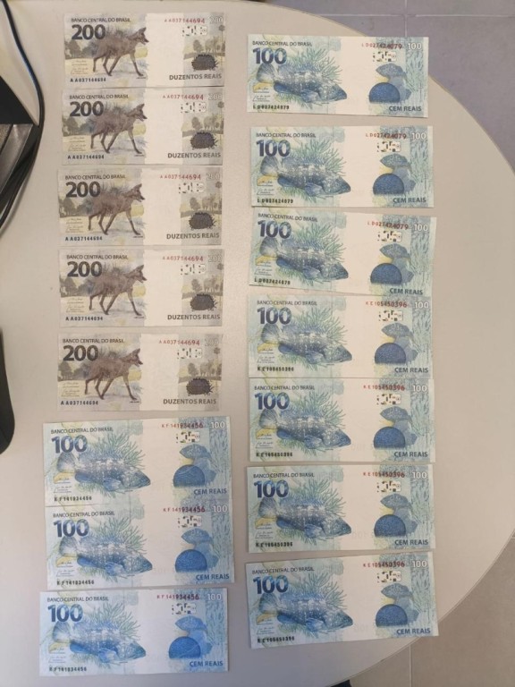 A embalagem foi aberta pelo suspeito identificado como destinatário na presença dos policiais. Após a constatação das irregularidades, o homem foi preso em flagrante logo em seguida. No pacote, foram encontradas 10 cédulas falsas de R$100 e 5 cédulas falsas de R$ 200 totalizando a quantia de R$ 2 mil. O aparelho celular do preso também foi apreendido.