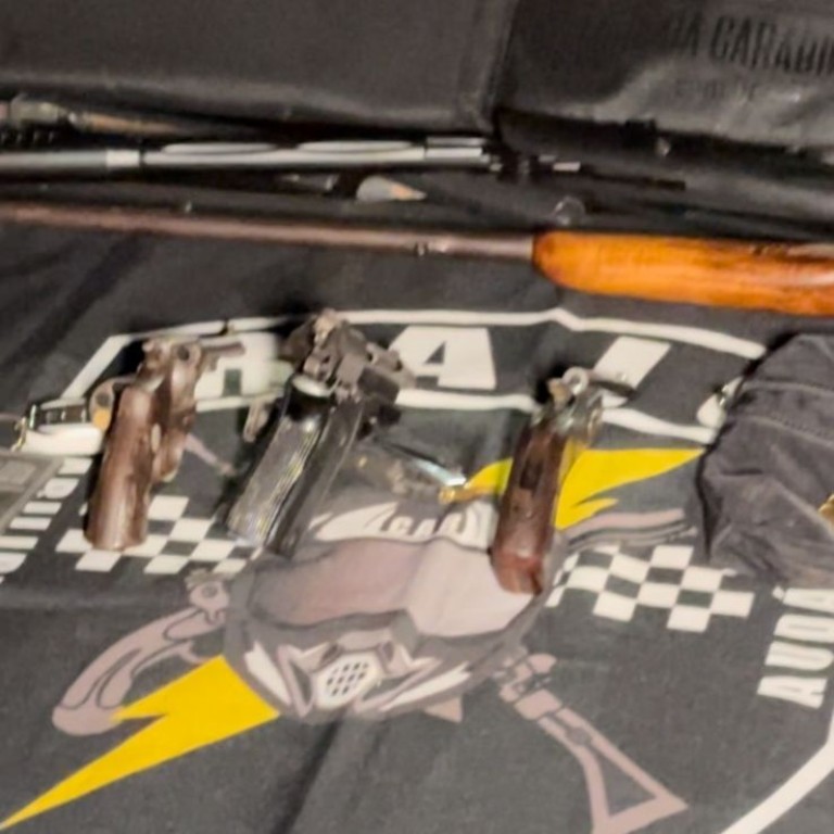 Em vistoria minuciosa, os policiais localizaram uma pistola de calibre .380, um revólver de calibre .22, uma garrucha e uma espingarda, além de munições para o armamento. Os objetos estavam embaixo dos bancos do veículo.