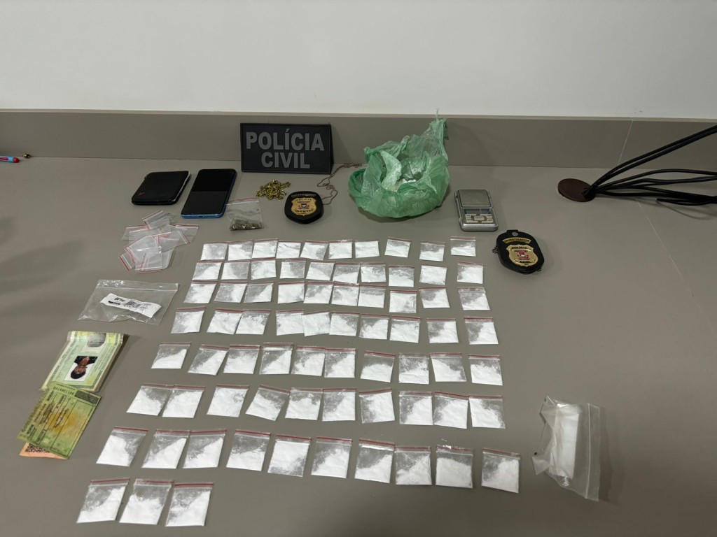A ação resultou na apreensão de diversas porções de cocaína já embaladas para a venda, além de apetrechos relacionados à atividade de tráfico.