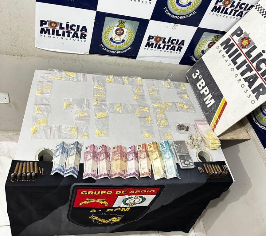 Policia Militar prende três homens por tráfico, apreende munições e 83 porções de drogas