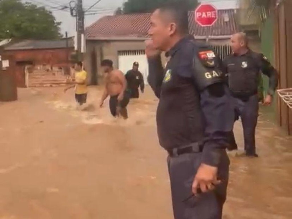 Policiais militares resgatam duas idosas ilhadas em residências durante forte chuva em Cuiabá