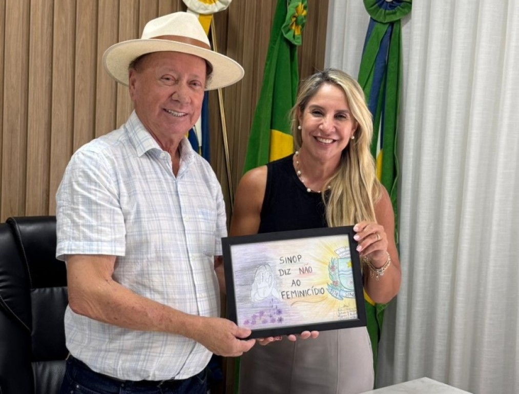 Na manhã desta segunda-feira (03), o prefeito de Sinop, Roberto Dorner, recebeu das mãos da secretária municipal de Educação, Salete Rodrigues, o desenho escolhido durante a formação de profissionais da educação realizada na última sexta-feira (31). A atividade marcou o início da implantação do projeto “A escola ensina, a mulher agradece”, desenvolvido pelo Tribunal de Justiça de Mato Grosso (TJ-MT) como parte das ações de combate à violência contra a mulher.