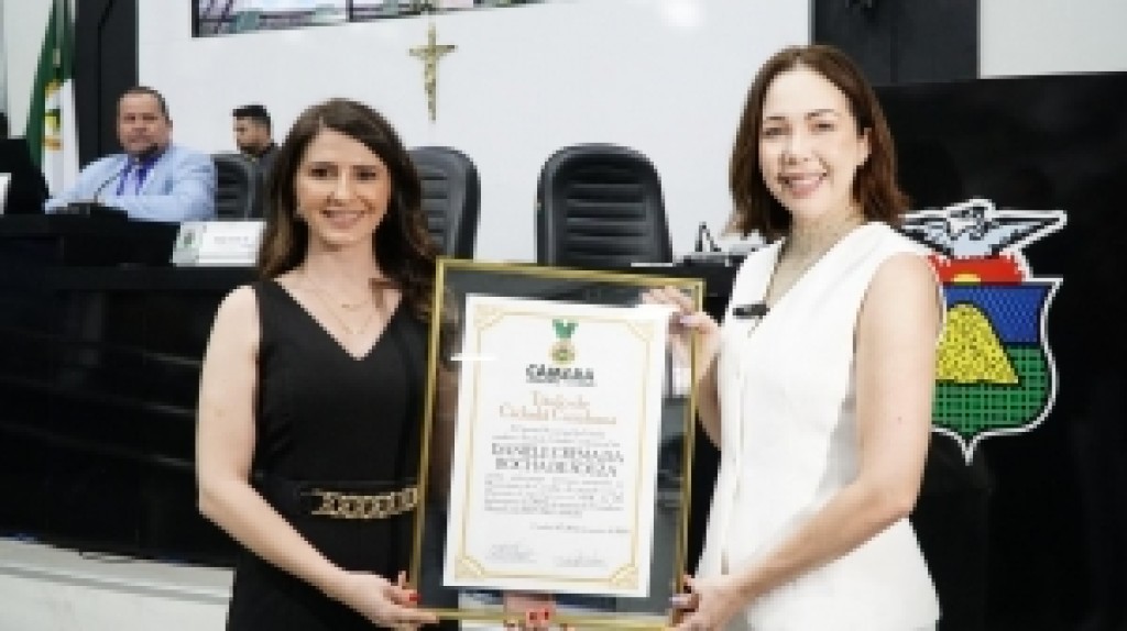 A vereadora Maysa Leão (Republicanos) entregou na Sessão desta terça (05) o Título de Cidadã Cuiabana para a promotora de Justiça Dra. Daniele Crema da Rocha Souza. A jurista atua no núcleo das Promotorias de Justiça da Infância e Juventude da Capital – 19ª Promotoria de Justiça Cível de Cuiabá.