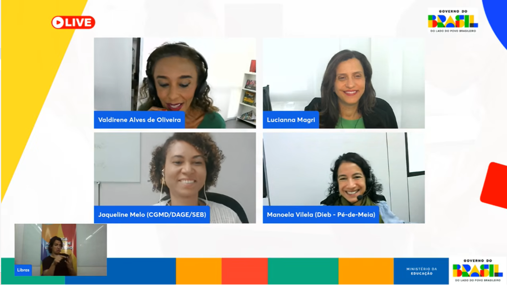 Também participaram do webinário Luciana Magri, da Diretoria de Formação de Professores; Manuela Vilela, da Diretoria de Educação Básica (Dieb); e Jaqueline Melo, da Diretoria de Apoio à Gestão Escolar (Dage).